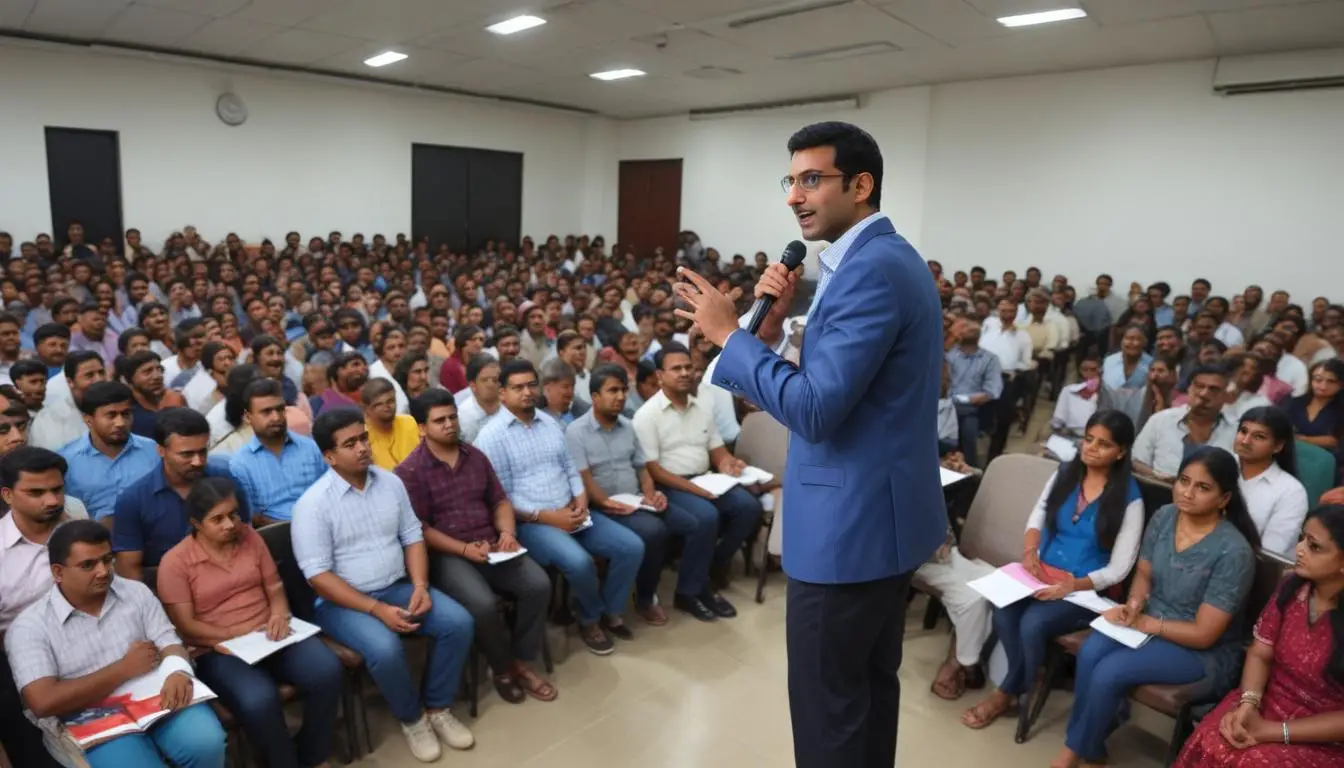 Our Public Speaking and Workshops provide individuals with the tools and techniques needed to present confidently in front of an audience. Through interactive sessions led by Vishal, participants will learn how to structure presentations, engage their audience, and overcome public speaking anxiety. These workshops are perfect for anyone looking to improve their communication skills, whether for personal development or professional advancement. Join us to elevate your speaking abilities!